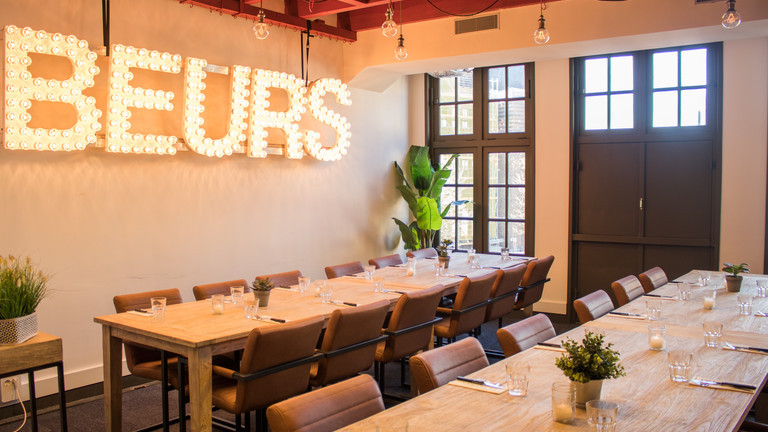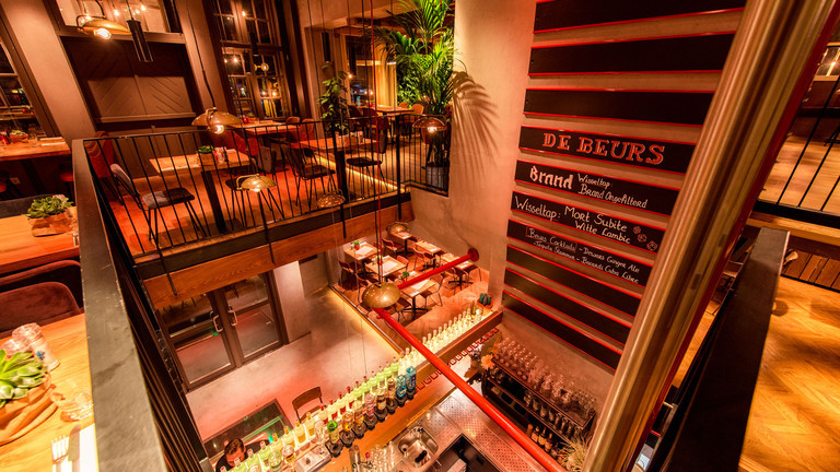 De Beurs: al sinds 1996 gevestigd in de vier markante rode panden aan de Neude en sindsdien een begrip in Utrecht. Wij voorzien onze gasten van een lekkere lunch, een sfeervol diner en natuurlijk een gezellige borrel. Op donderdag, vrijdag en zaterdag gaan de voetjes van de vloer vanaf 23:30u en kun je komen dansen op de hits die worden gedraaid door onze DJ's! In de zomer kunt u tevens plaatsnemen op ons grote - zonovergoten - terras op het plein.