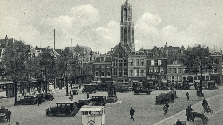 Lammerts van Bueren – de firma bestaat overigens nog steeds – was een bekende naam in Utrecht, maar minder bekend is het verleden van het rechterpand aan de Neude. In dit huis, dat rond 1860 rondom een veel oudere kern werd gebouwd, bevond zich in 1890 de eerste telefooncentrale van de stad! De Nederlandsche Bell-Telephoon Maatschappij schakelde vanuit hier de gesprekken door die de 163 geabonneerde Utrechters met elkaar voerden. Binnen, in de kantoorruimtes van de huidige Beurs, is de fundering van de telegraafmast die op het dak stond nog te zien. Waar die van is gemaakt? Van die andere moderne 19e-eeuwse techniek natuurlijk: de mast stond op oude spoorbielzen.